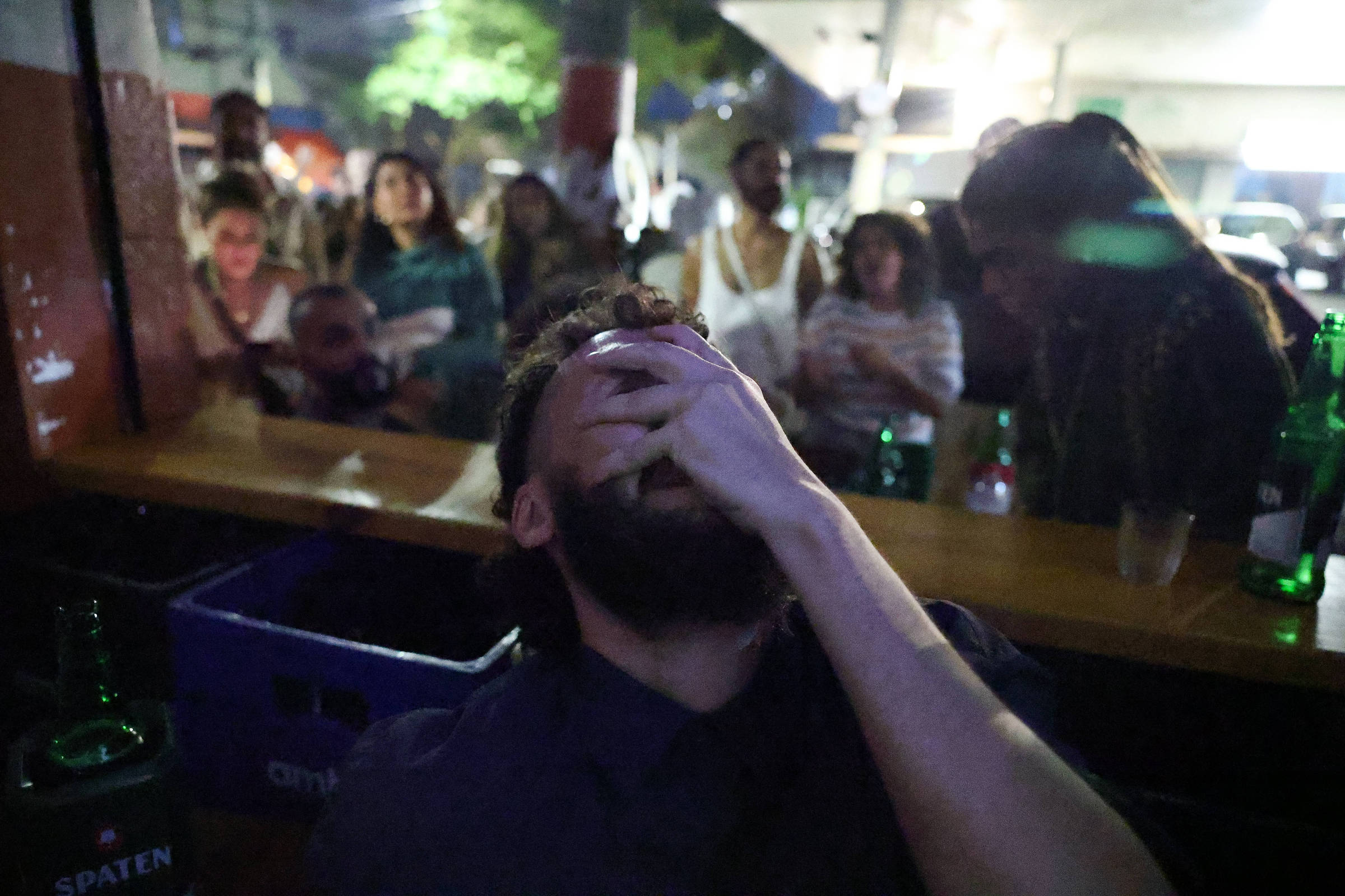 Na Barra Funda, o público se acotovelou no interior do bar Baiúca para ver a novela projetada no alto de uma parede branca com um pequeno delay no áudio. A entrada era franca.